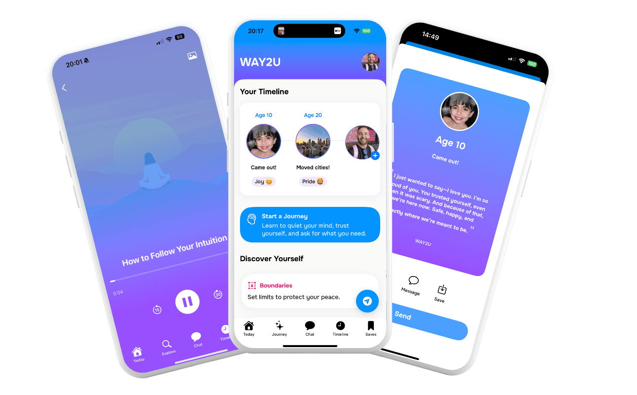 We believe that healing is more than just self-reflection—it should be an experience. WAY2U’s guided journaling and AI-powered insights help you reconnect with your younger self and trust your intuition like never before.